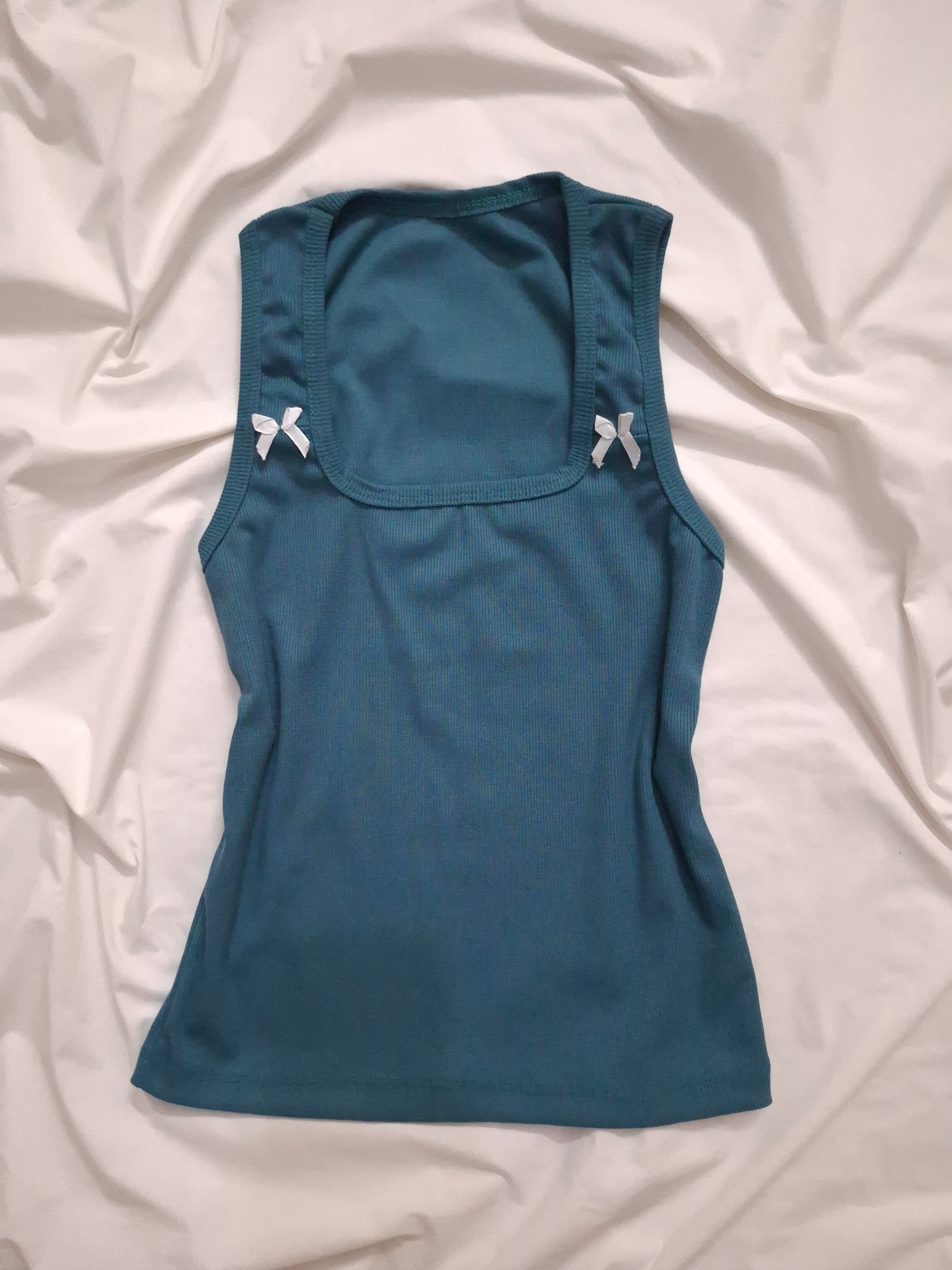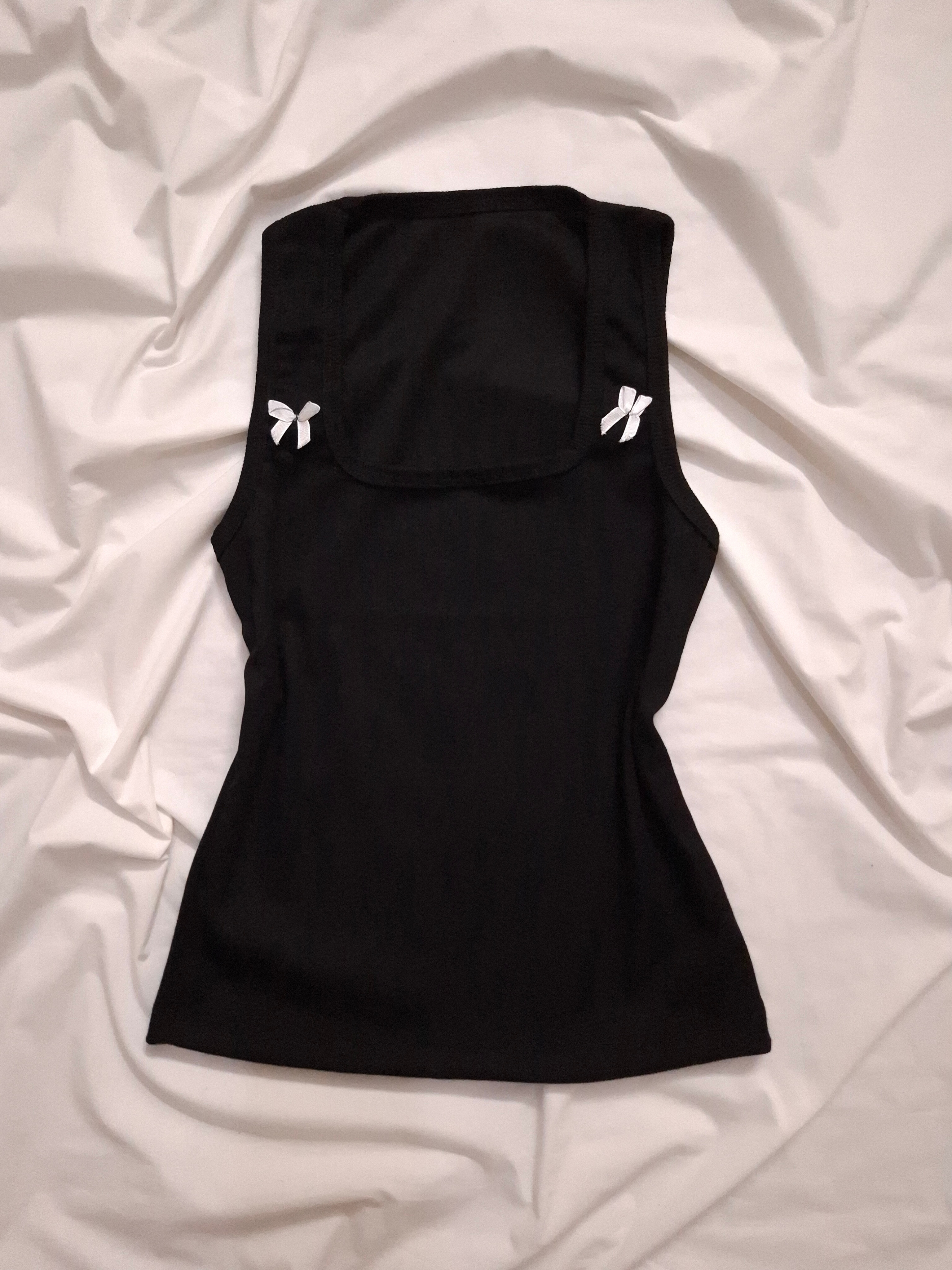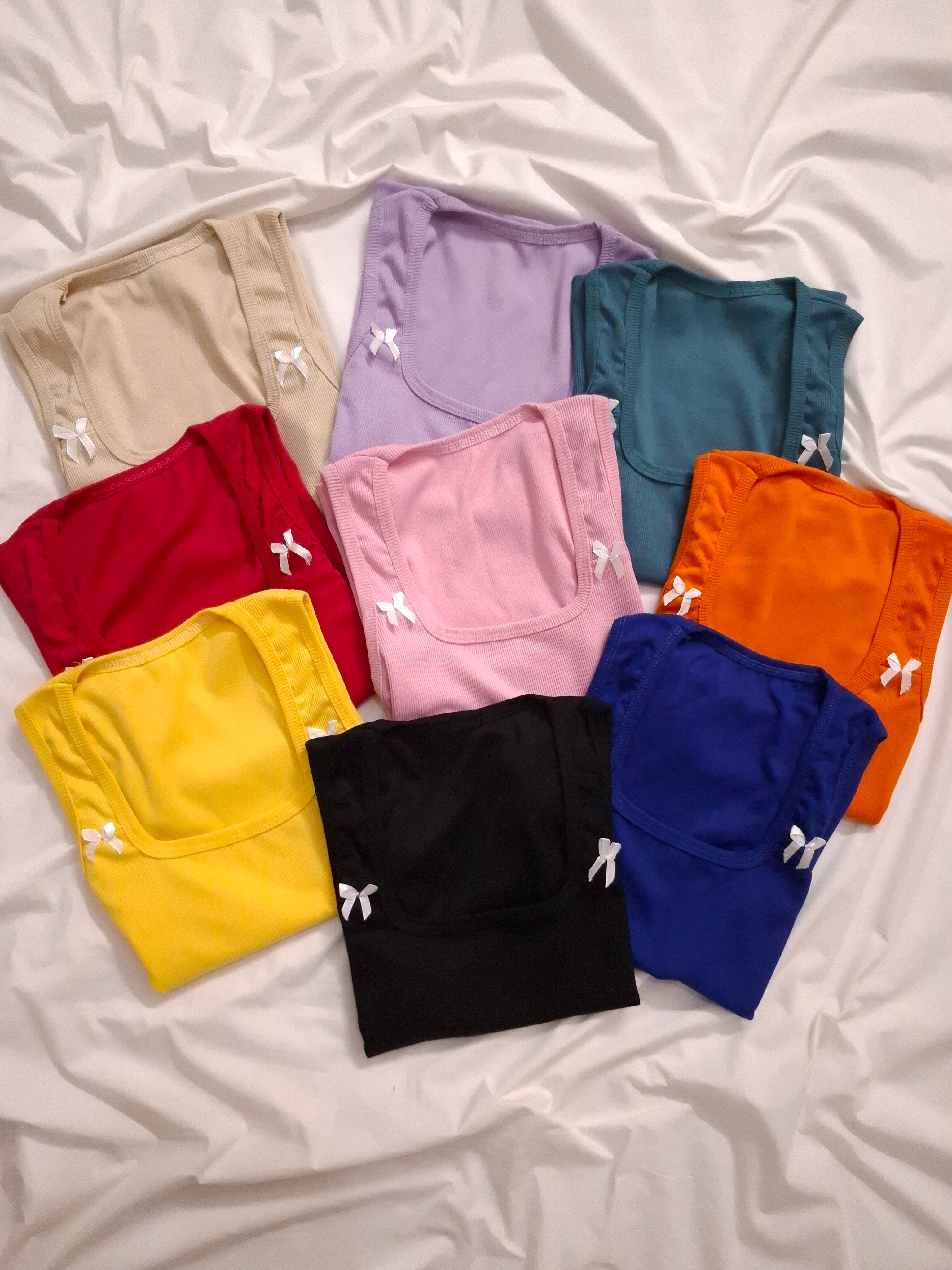 کراپ دخترانه مدل پاپیونی یقه خشتی بی آستین جنس کبریتی